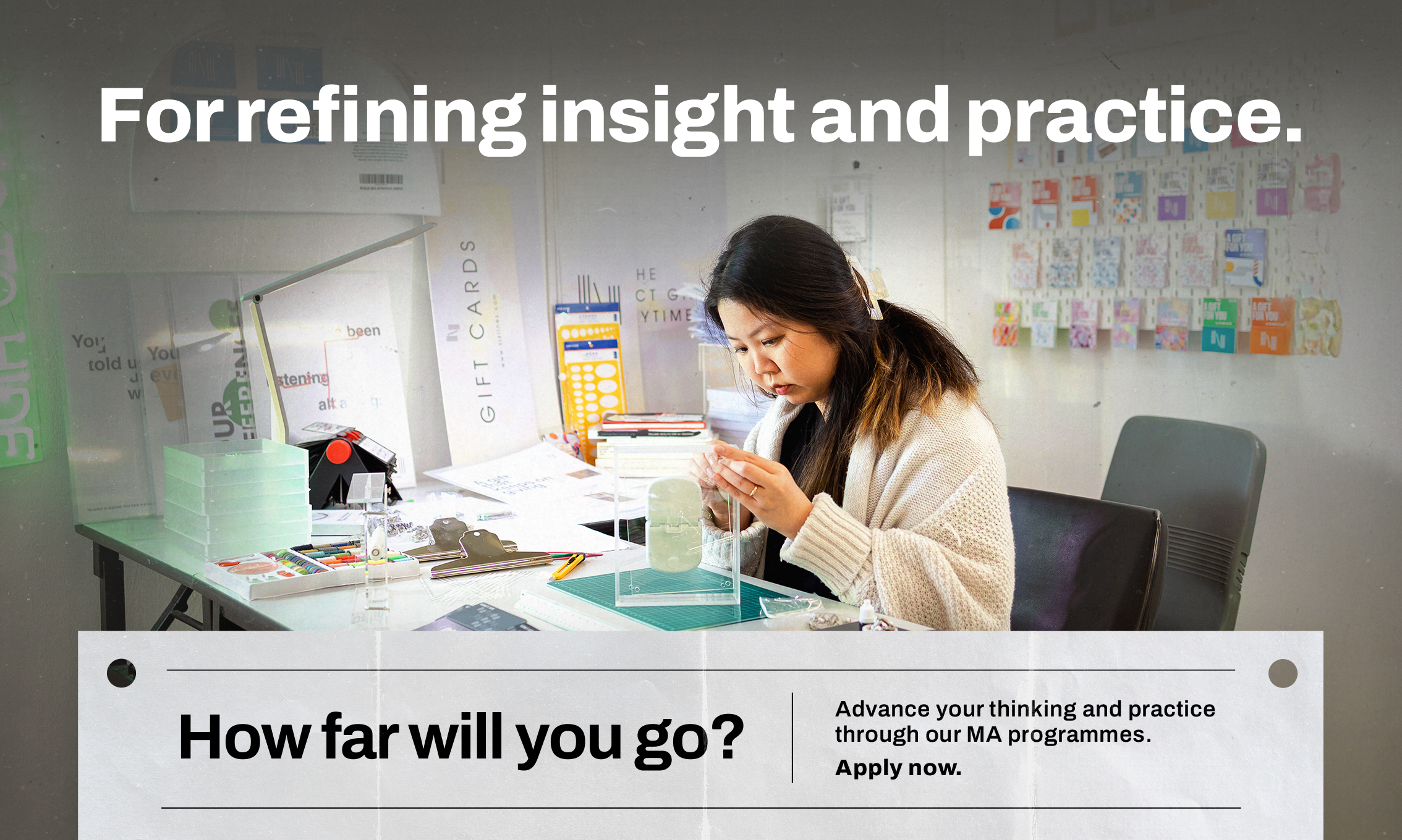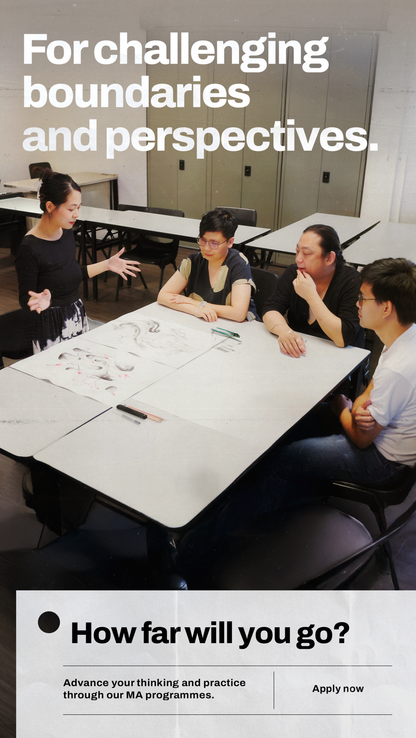 Advance your thinking and practice through our MA programmes. Take the next step in your postgraduate education at Asia’s leading contemporary arts and design institution.